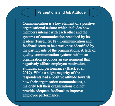 For organizations to be successful leaders must create an environment that promotes a positive working environment for their employees. While leaders cannot control their organizational culture, they do have the ability to incorporate strategies that promote a positive working environment for their employees (Farrell, 2018). One way organization leaders can assess their culture is through organization-wide surveys (Farrell, 2018). A survey was conducted by the author to ascertain how employees viewed their organizations culture. The survey participants included various occupations that included police officers, educators, and medical workers. The survey focused on the employee’s perception of organization happiness, their perceptions and job attitudes, and their organizations support for their stress and well-being.