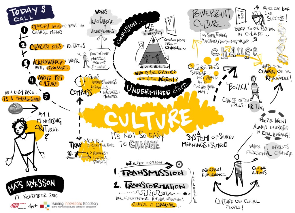 Changing Organizational Culture is Hard! by Mats Alvesson https://www.learninginnovationslab.org/changing-organizational-culture-is-hard-by-mats-alvesson/